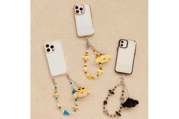 「【ポムポムプリン】/フェイスキーチャームツキHS」(2,890円)は、ビーズストラップにフェイスぬいぐるみが付いたキーチャーム。ビーズには、「ポムポムプリン」のおしりのパーツもついています。