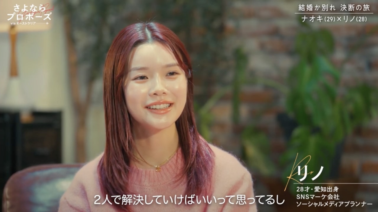 外資系IT会社で働くナオキ(29)と、SNSマーケの会社で働くリノ(28)は交際歴1年9カ月。リノは「30歳までに結婚したい」「“好き”なら結婚できる」「問題は結婚してから解決したい」と考えているのに対し、離婚歴があるナオキは再婚に慎重で、「未だ話し合いが多い今のままじゃ結婚できない」と思っており、価値観のズレを感じています。
