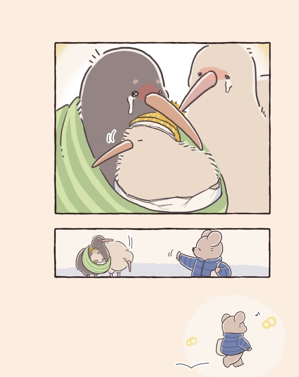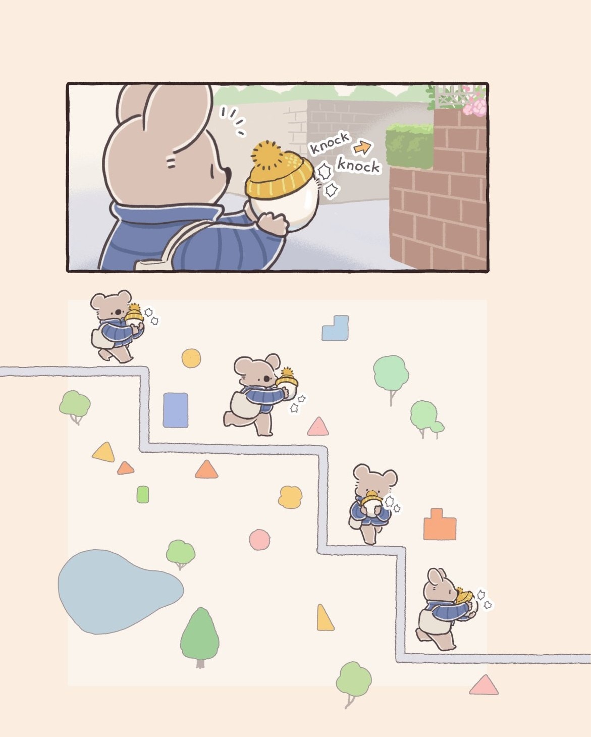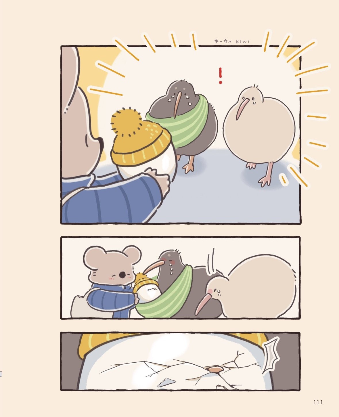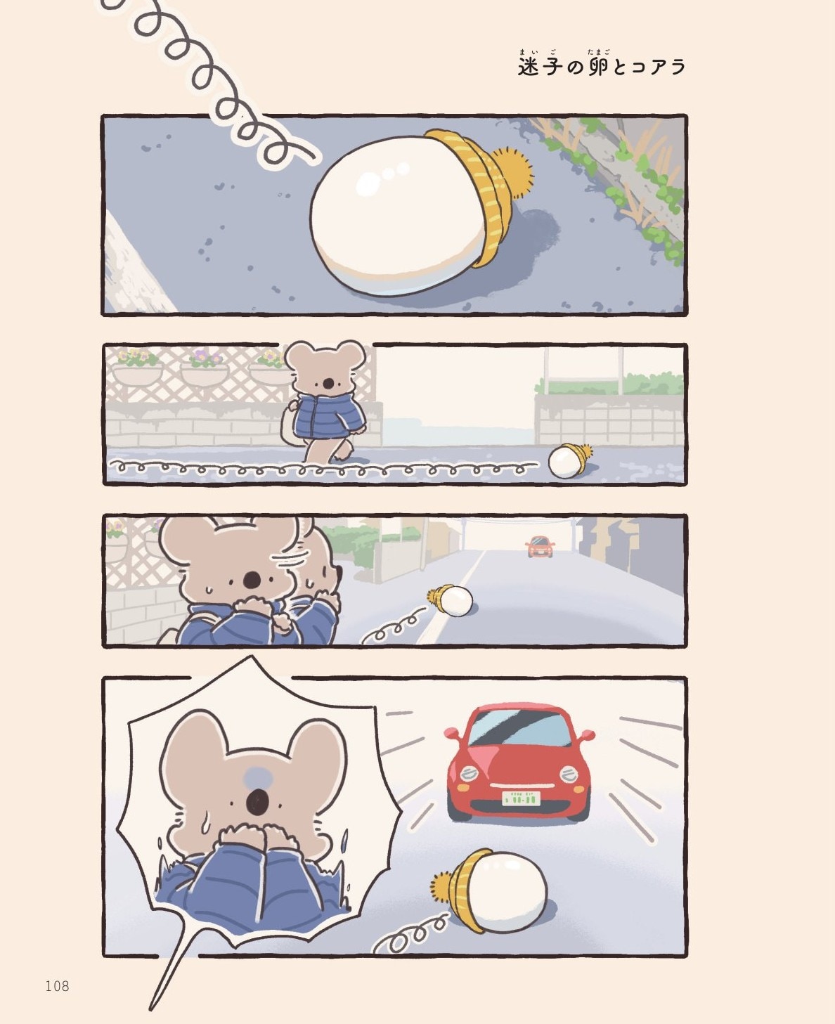 道で大きな卵を拾ったコアラさん。黄色い帽子が被せてあるのがかわいいですね。導かれるように進んでいくと、卵のお父さんとお母さんが! 生まれるタイミングに立ち会うことができてよかった……!