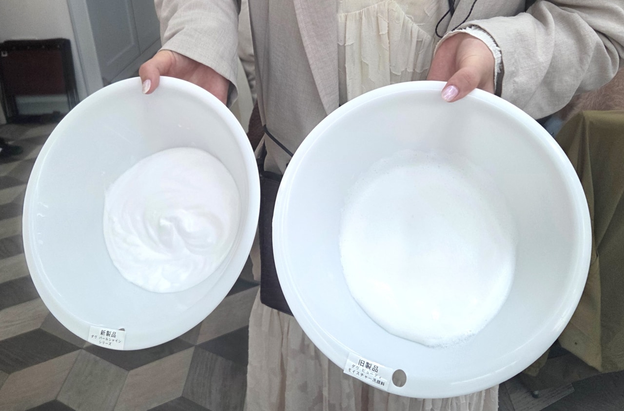 従来品に比べて、泡のきめ細かさがアップし、弾力も35%アップ