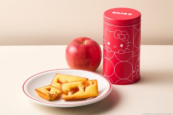 フィナンシェ缶「RINGOフィナンシェ ハローキティ 缶」(1,480円)は、オリジナルフィナンシェ3個を、「ハローキティ」のデザイン缶に詰めた限定商品となっています。フィナンシェは、バターのコクが広がる生地に、大きめにカットしたりんごを合わせています。りんごは国産ふじりんごを蜜漬けにしたものとなっています。