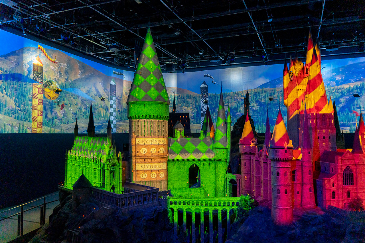 ツアーの最後は、ホグワーツ城の模型に投影される新しいプロジェクションマッピングの演出で締め。魔法界の大人気スポーツ「クィディッチ」の試合のシーンをイメージしています。映画の音源とともに、ハリーが100年ぶりの最年少シーカーとしてグリフィンドールの代表選手に選ばれた最初の試合を楽しめますよ。