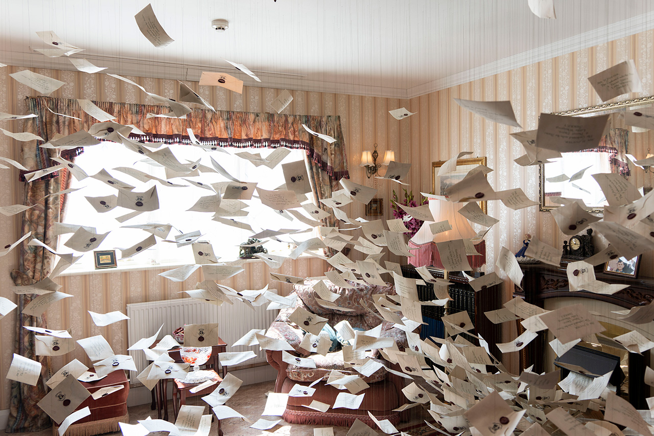 ツアー後半で出会える「ダーズリー家」では、ハリーに届いた無数の入学許可証を表現。以前も同様の展示がありましたが、今回の特別企画に合わせて手紙の量が増量しています。こんな量の手紙に囲まれたら、ダーズリーじゃなくても目を丸くしちゃいますね!