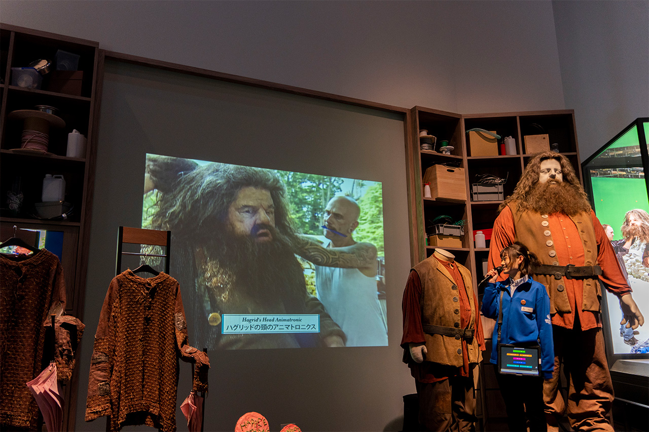 映画を見た誰もが「どうやって撮影してるの?」と疑問を抱く人物といえば、半巨人の「ハグリッド」。驚くことに、ハグリッドを演じた役者さんは2人いたんです! 顔のアップなどメインはロビー・コルトレーンさんが演じていたものの、身長約183cmだったため、巨人を演じるには不十分でした。そこで身長208cmの元ラグビー選手がアニマトロニクス制の特製マスクを被り、遠目で撮影した時に巨人感を演出したんだとか。ほかにもさまざまな撮影のコツがあるので、ぜひ現地で聞いてみてくださいね。