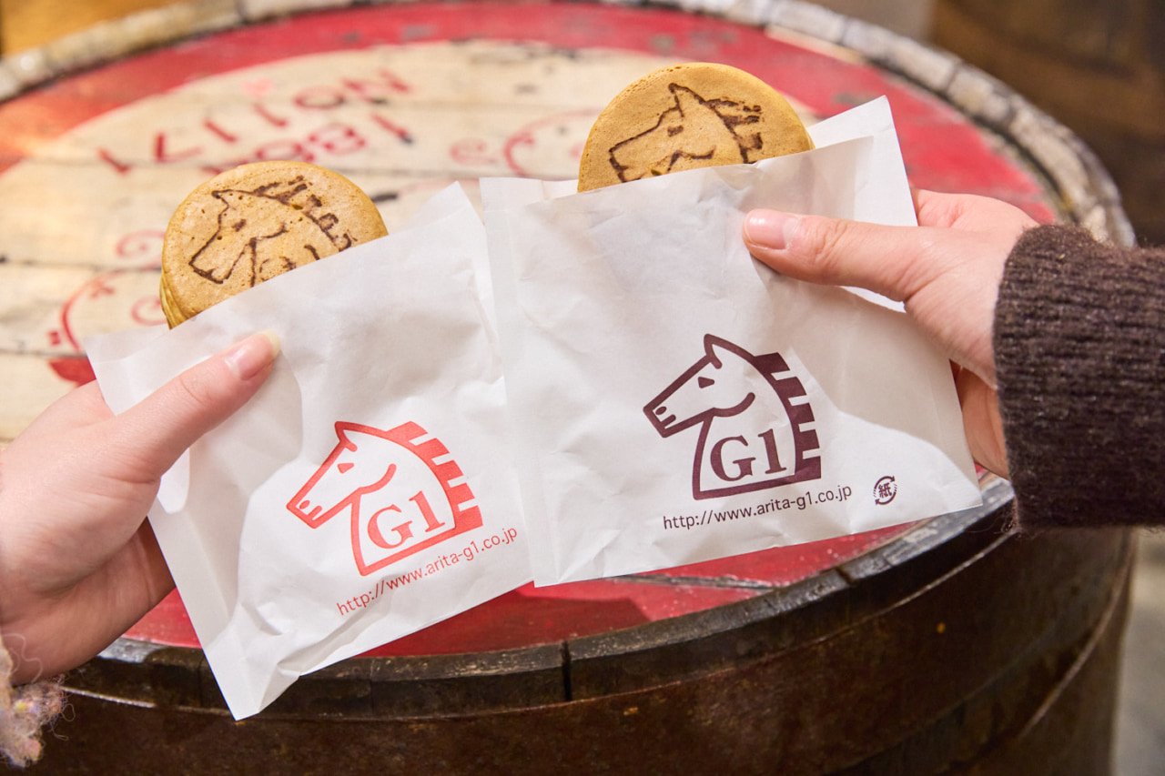 通常は馬の焼印入りですが、JRAの周年記念には「70th」など特別仕様になることも。G1レースの日には、ゲン担ぎで購入するファンも多い名物グルメです。