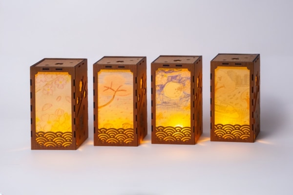 各行灯には、江戸時代から続くさくらの名所としての御殿山の歴史をこの先にも繋いでいきたいという子どもたちの想いが込められています。