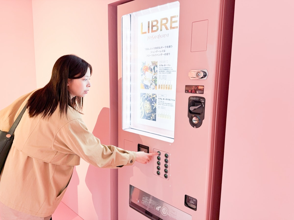 ドリンクではなくフレグランスのサンプルが手に入る自動販売機も設置され、イヴ・サンローランのアイコンフレグランス、フローラルラベンダーの「リブレ オーデパルファム」とフローラルシトラスの「リブレ ロー ニュ」から選ぶことができます。ホテルの思い出を香りで持ち帰ることができますよ。