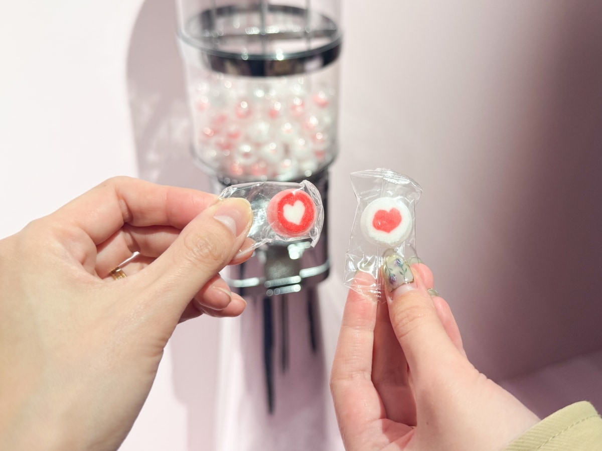 階段を上がった先で見つけたのは、「YSL ラブヌード ガチャ」。コインを入れてガチャを回すと、ハートが描かれたキャンディをゲットできます。