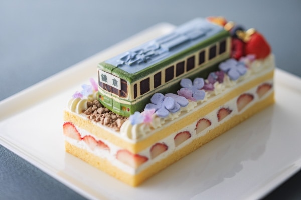 また、ホテル内にあるラウンジ「あじさい」では、江ノ電をモチーフにした1日1台限定のオリジナルケーキ「江ノ電ケーキ」(6,800円)を販売します。紫陽花をあしらったデザインが特徴となっています。販売期間は2027年3月31日まで。