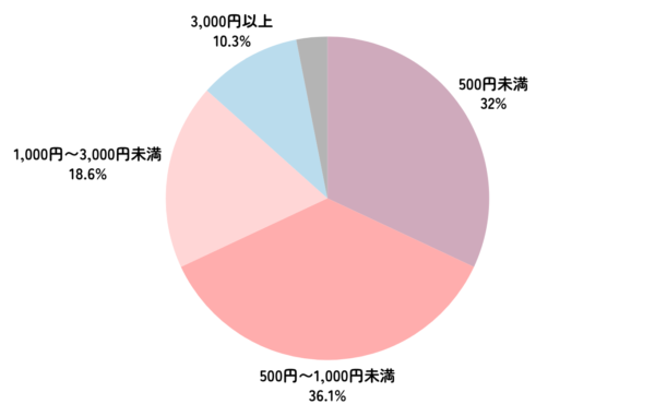 最も多かったのは「500円〜1,000円未満」で、全体の約7割が月1,000円未満に収まっています。